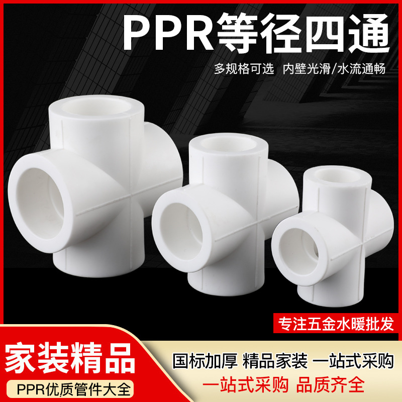 Ppr水暖パイプの新しい材料の家の装飾金の四通の厚い管の壁の白色の熱融管の部品のpprの等径の四通
