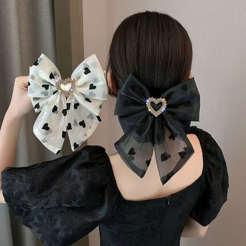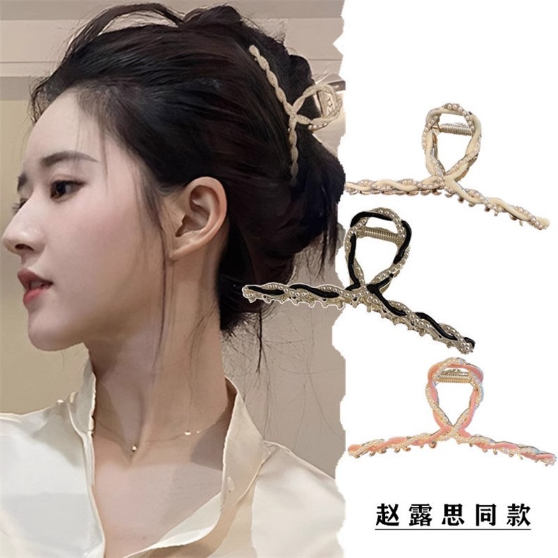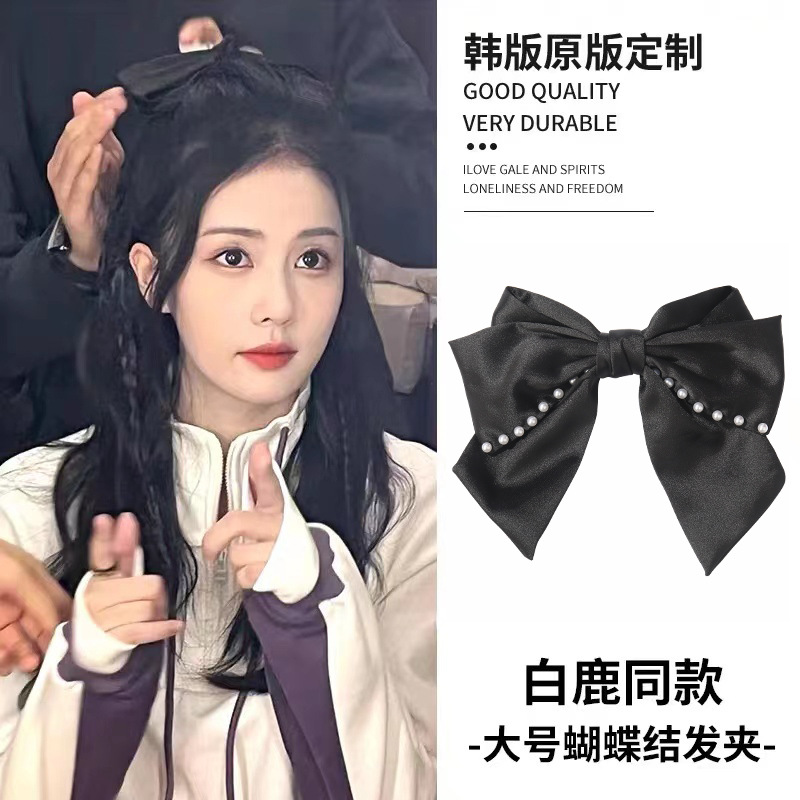 白鹿の同じタイプの蝶結びのヘアピンの後頭部の束のヘアピン2024潮の真珠のサテンの馬尾のスプリングは髪飾りを挟みます。