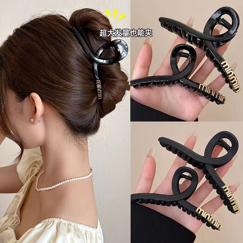 黒い大きいサイズのヘアピンの女性の後頭部のサメの魚の挟みの高級感のクリップの2024の新型のハイエンドのクリップの髪飾りのカード