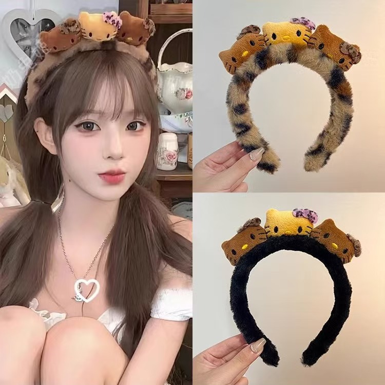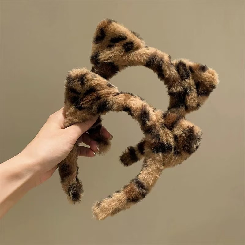 秋冬新作レオパード高级感パイル洗颜カチューシャ猫耳カチューシャ可爱いカチューシャヘアピン