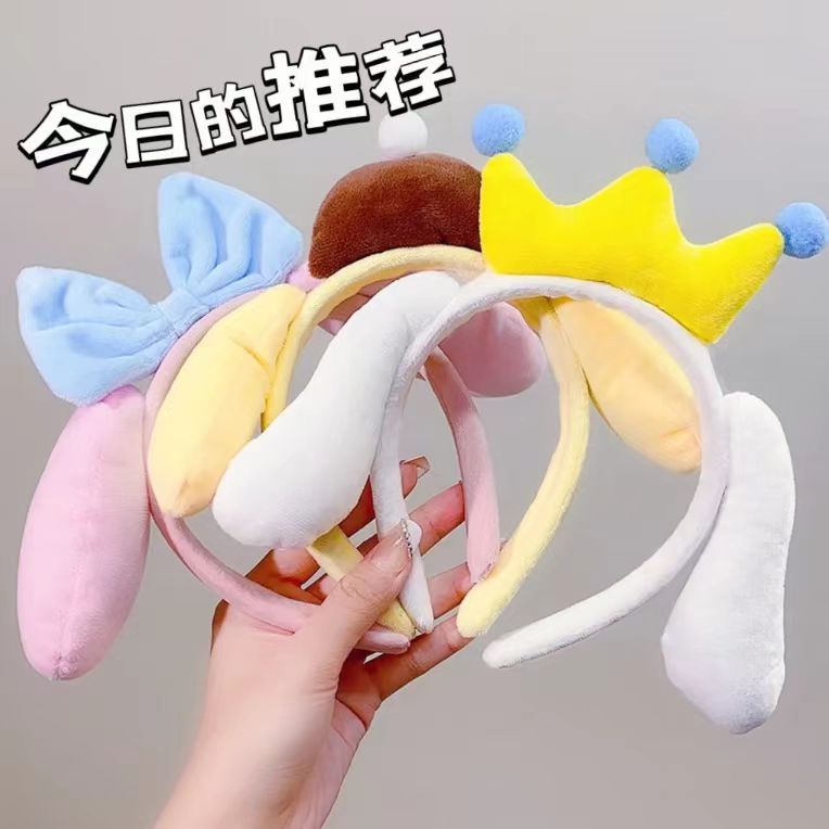 かわいいアニメの耳の蝶結びは顔を洗ってカチューシャをします。