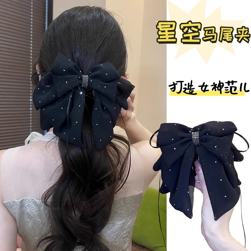 女性用リボンクリップ、高級クリップ、ヘアアクセサリー、ボリュームと気質を高めるポニーテールクリップ、2025年新作後頭部ヘアクリップ