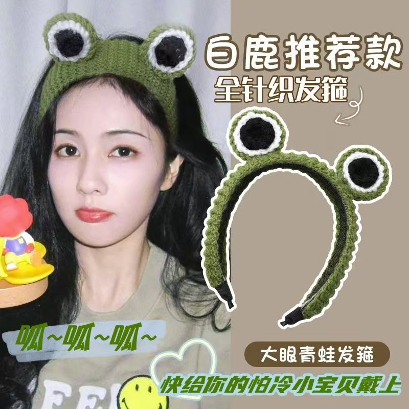 漫画の気質の大きい目のカエルのかわいい髪のカチューシャの女性の顔を洗う毛糸のニットのカチューシャの滑り止めの髪のカチューシャの髪飾り