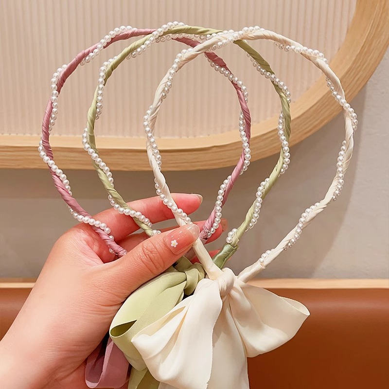 子供のヘアバンドのカチューシャの女の子の真珠のシルクタオルの滑り止め髪のカチューシャの女の子の夏の馬尾のヘアバンド