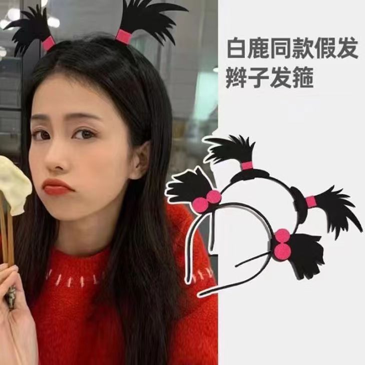 かわいいアニメの耳の蝶結びは顔を洗ってカチューシャをします。
