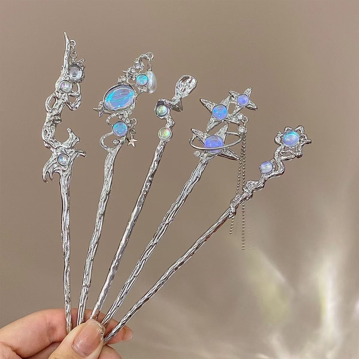 高級感星空月光石流蘇髪かんざし古風気質盤髪かんざし復古漢服歩揺髪かんざし飾り