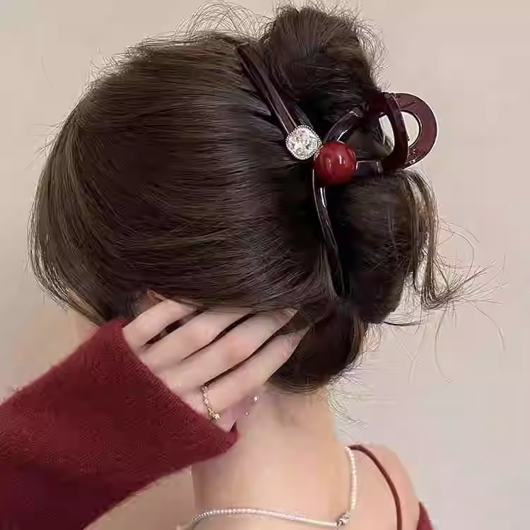 レトロで贅沢な赤い真珠がヘアピンをつかむ女性2024の新しい後頭部サメクリップの高級感が多い