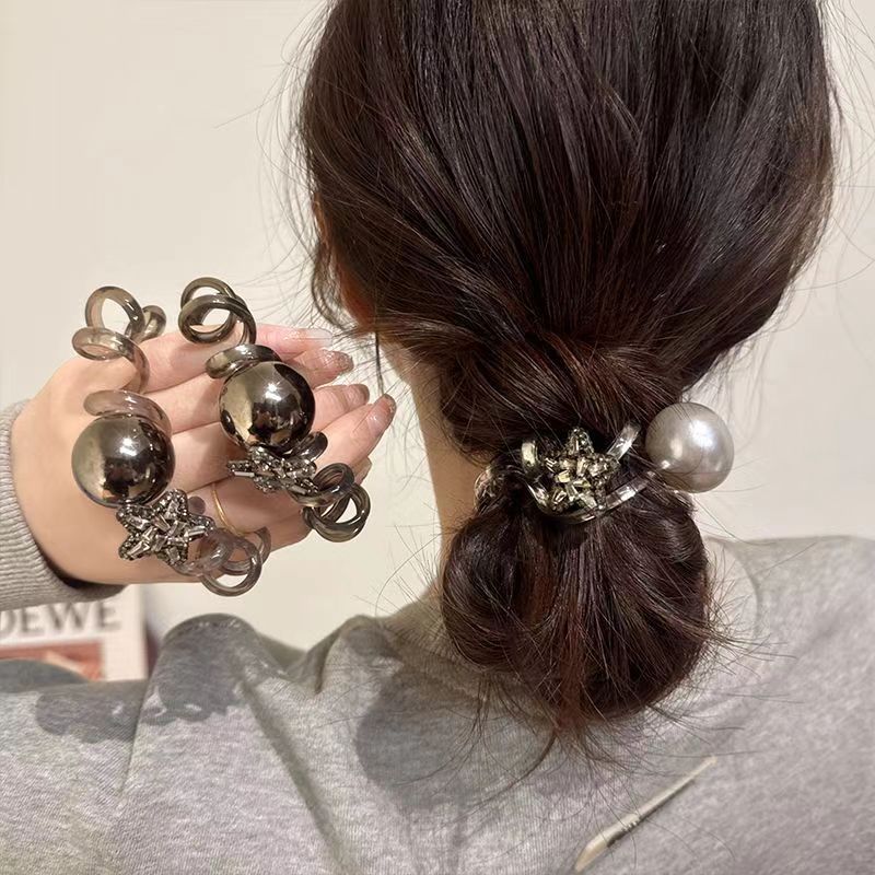 韓国東大門の新型ラインストーンの星の真珠の電話線のヘアリングの気質のゴムの筋は団子の紐を刺して髪を飾ります。