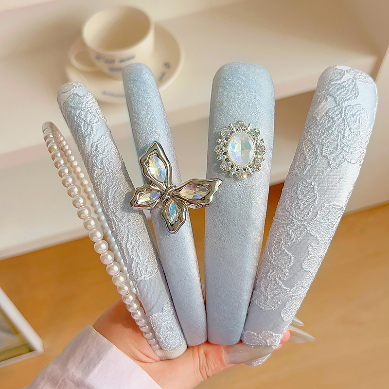 海塩藍蝶 ~ 真珠のドリルのカチューシャ女baby藍小香風のカチューシャ韓国版の甘いプリントの髪飾り