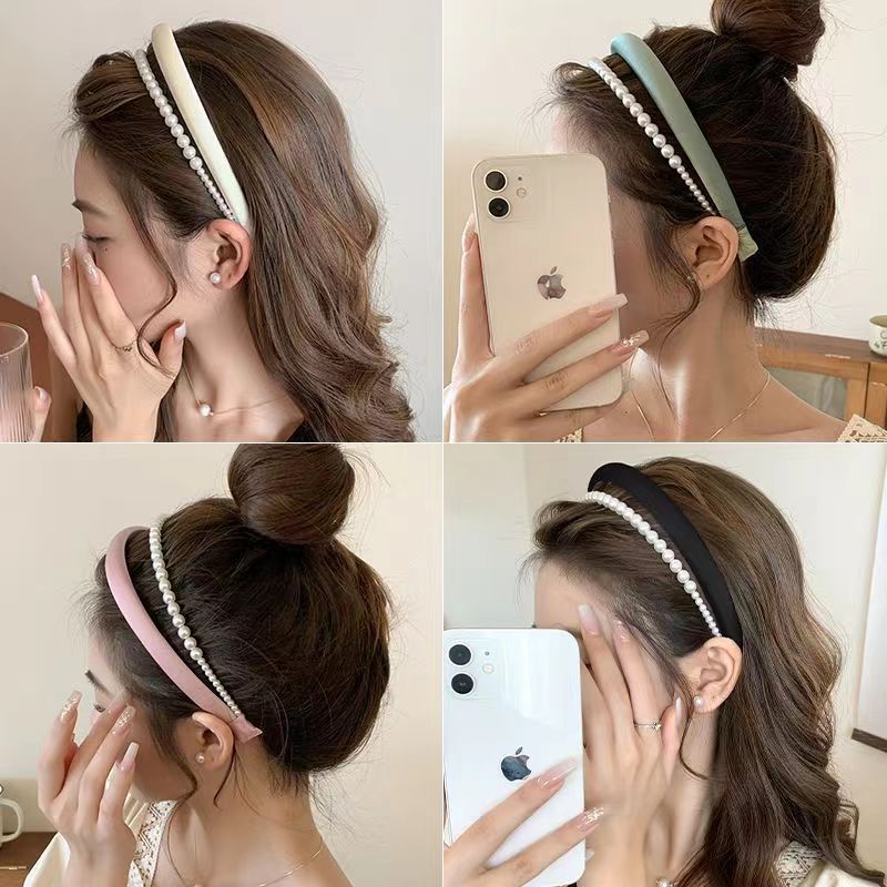 背の高い真珠のスポンジの一体のカチューシャの女性2023新型の洗顔のカチューシャの頭の飾りの百合は顔の小さいカチューシャを現します。
