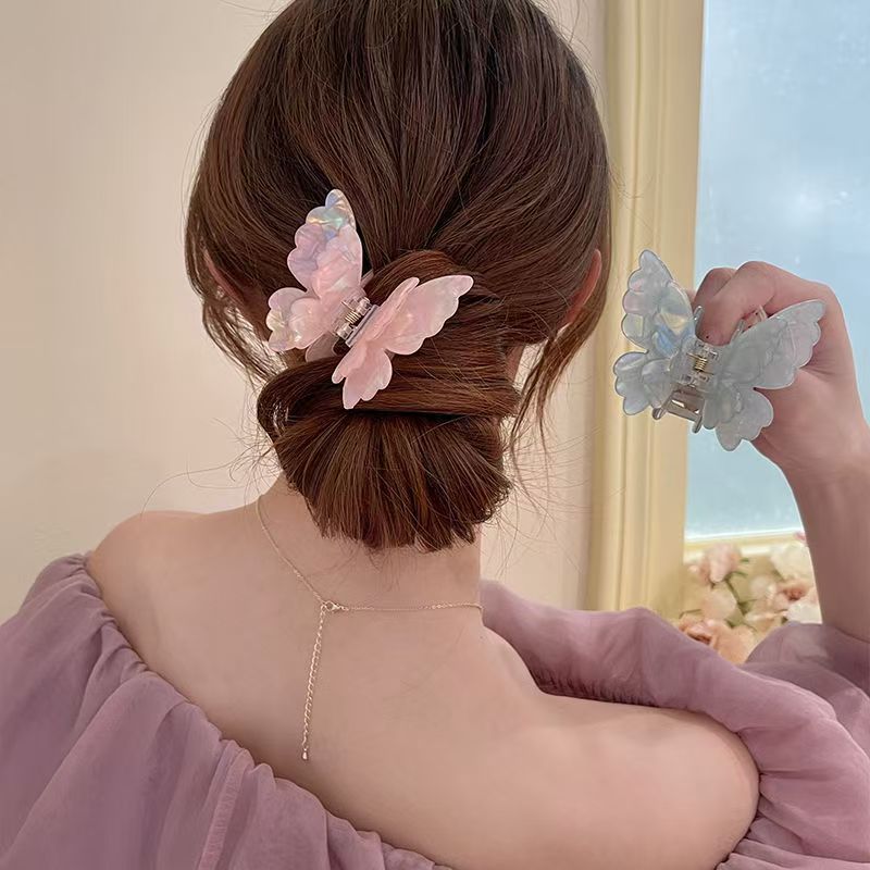 2024年の新型酢酸の蝶々が飛んでいます。女性の仙気の髪を挟みます。