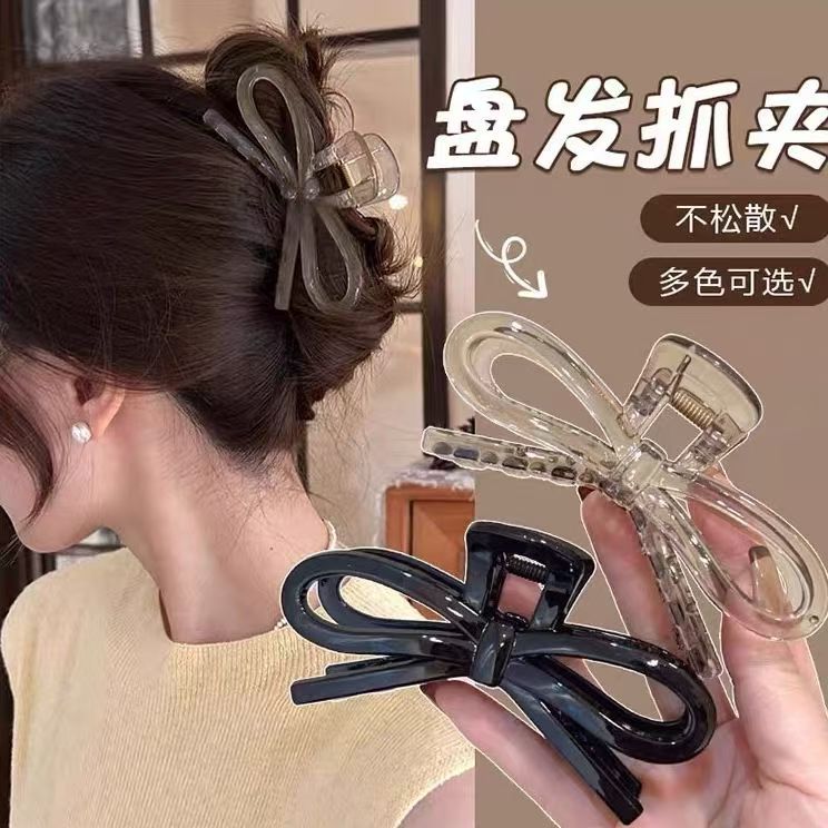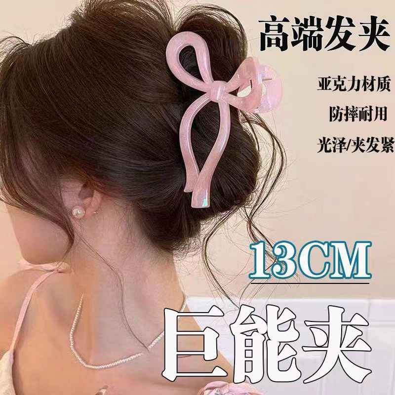女性用真珠光沢リボンリボンクリップ、ハイエンド2025新しい大型サメクリップ、後頭部の髪のボリュームの多いヘアクリップ