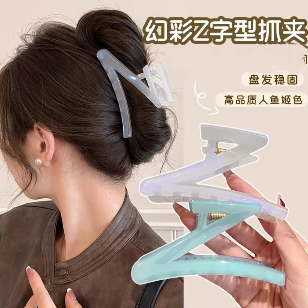 シンフォニーゼリーカラー Z 字型グリッパー女性のハイエンド 2025 新しい大型サメクリップヘアピン後頭部帽子