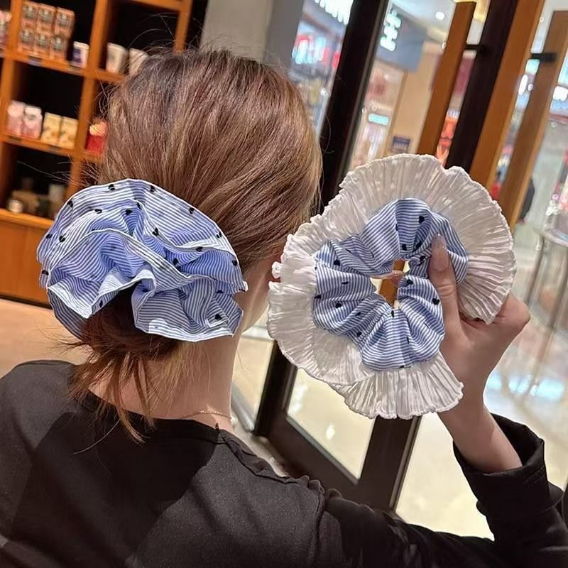 ブルーストライブラブハート二層プリーツヘアゴム女性用韓国風ボールヘアロープゴムバンドポニーテールヘアロープヘアアクセサリー