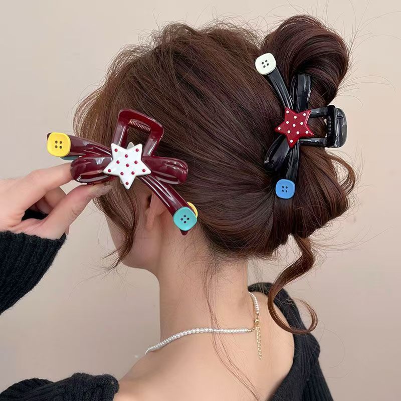 ネットセレブ五芒星ボタンクリップ女性用大型リボンヘアピン気質後頭部ヘアピンヘッドバンドサメクリップ