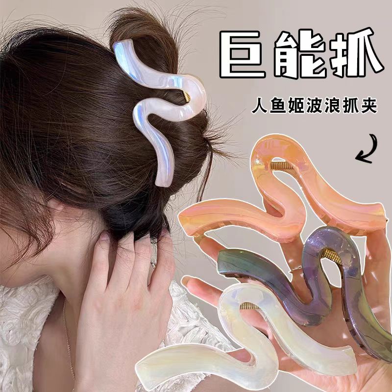 ハイエンド真珠光沢のあるウェーブグリッパー 2025 新しいサメクリップ後頭部ヘアピン大型ヘアピングリッパー頭飾り
