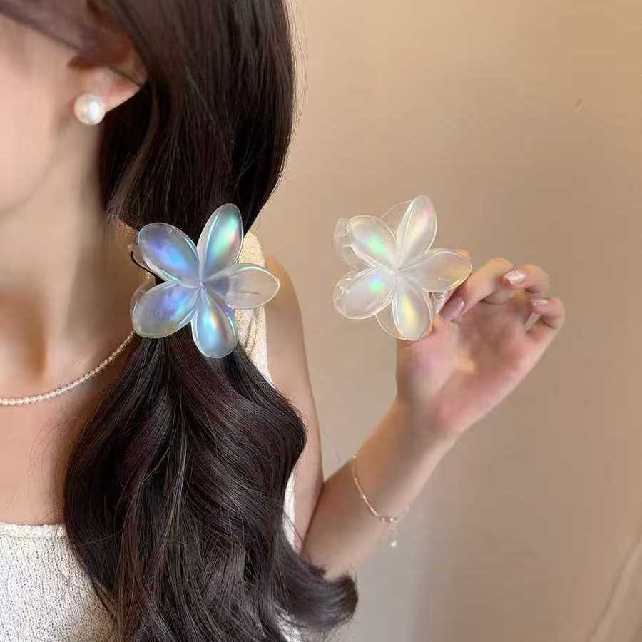 サマーマーメイドフランジパインフラワーヘアクリップ女性用 2025 新しいフラワーヘアクリップ海辺の休暇ヘアアクセサリー頭飾り怠惰なスタイル