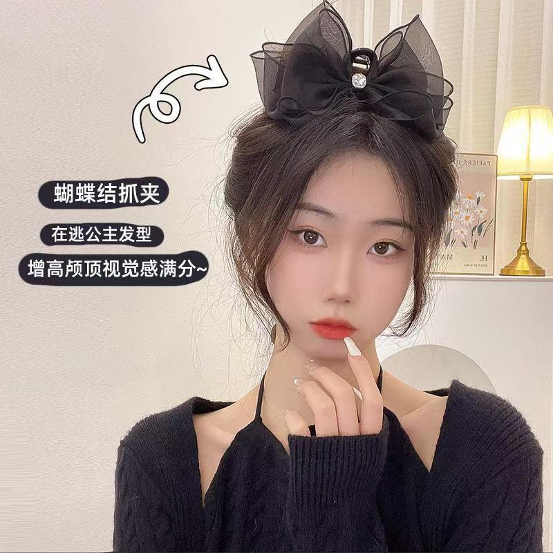 逃げている王女の頭飾りの黒い蝶結びの挟みのレベル感の盤髪のクリップの気質の後頭部のサメのクリップの髪飾り