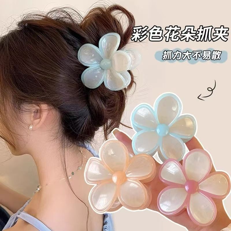 フラワーグリッパー レディース クリームゼリー コントラストカラー ヘアピン 春の甘い後頭部ヘアシャーククリップ ヘアグリッパー