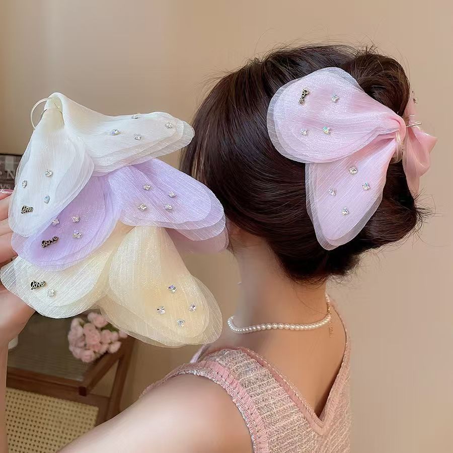 フレンチフェアリーチュールバタフライフラッシュダイヤモンドラージグリッパー女性用ヘアアクセサリーヘアピン気質多用途ヘアシャーククリップヘッドドレス