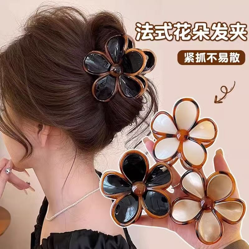 高級感と気質のフラワーグリッパー、レトロでシンプルな半分結び髪、後頭部のシャーククリップ、ヘアピン、ヘッドドレス