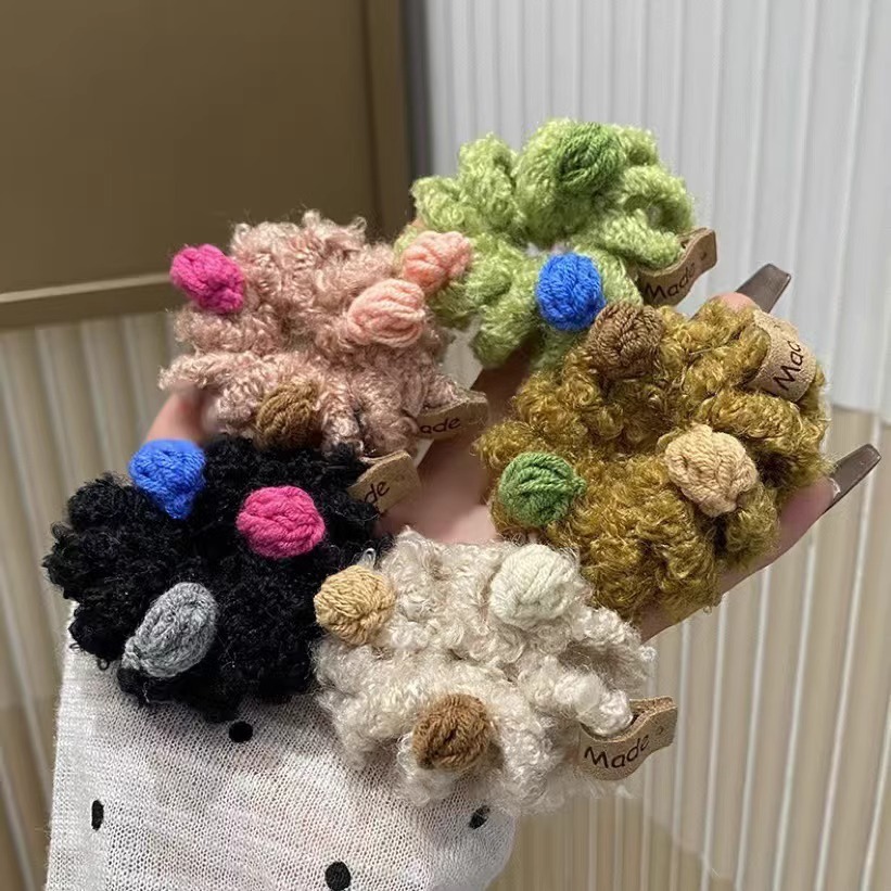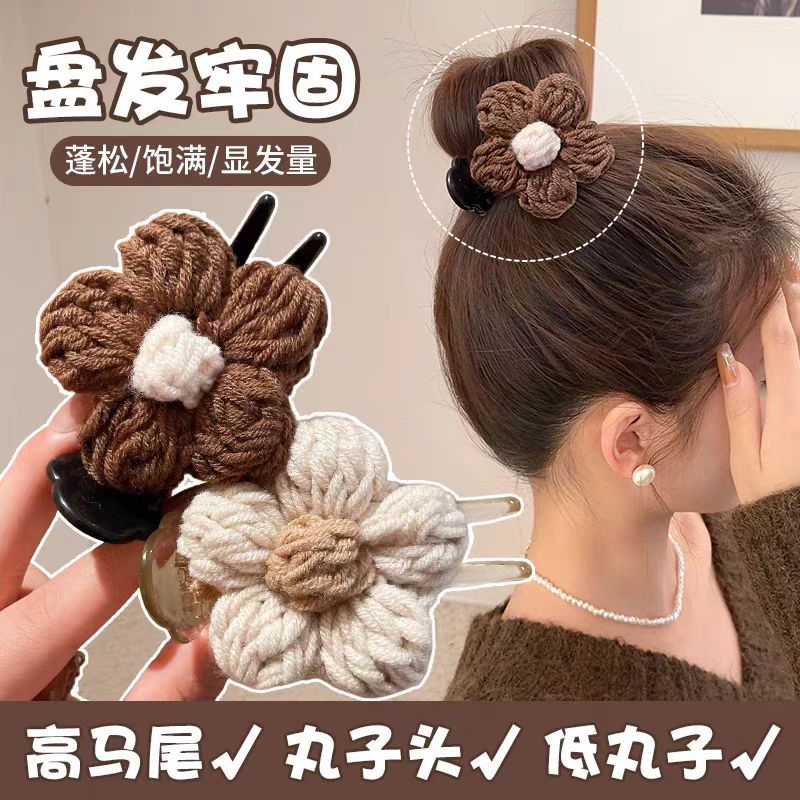 高品質のポニーテールの毛糸の花は女性の韓国系の甘い団子の頭をつかんで、サメの魚のクリップの秋冬の髪を挟んで飾ります。