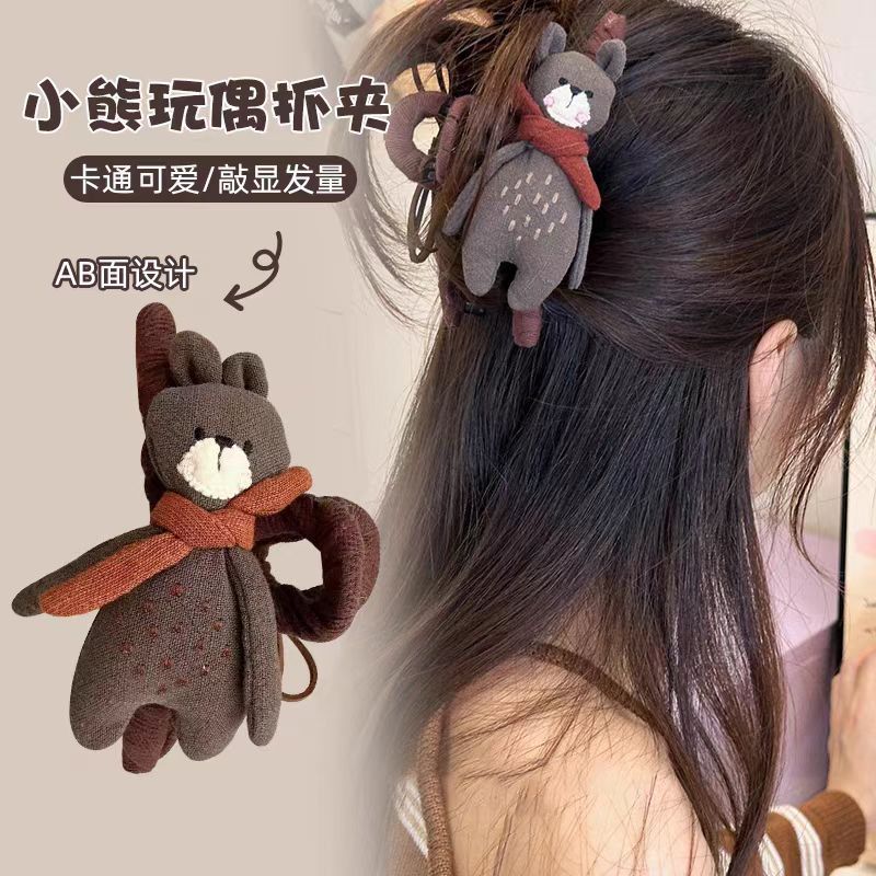 アニメのかわいいマフラーの熊は女性の秋冬の高級感のヘアピンの気質の蝶結びの後頭部のサメのクリップを挟みます。