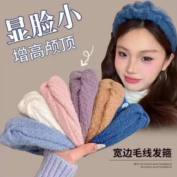 レトロなクラインの青い毛糸のカチューシャの女性の高い頭の頂のしわの広い辺のカチューシャの気質の洗顔のカチューシャの秋冬の髪飾り