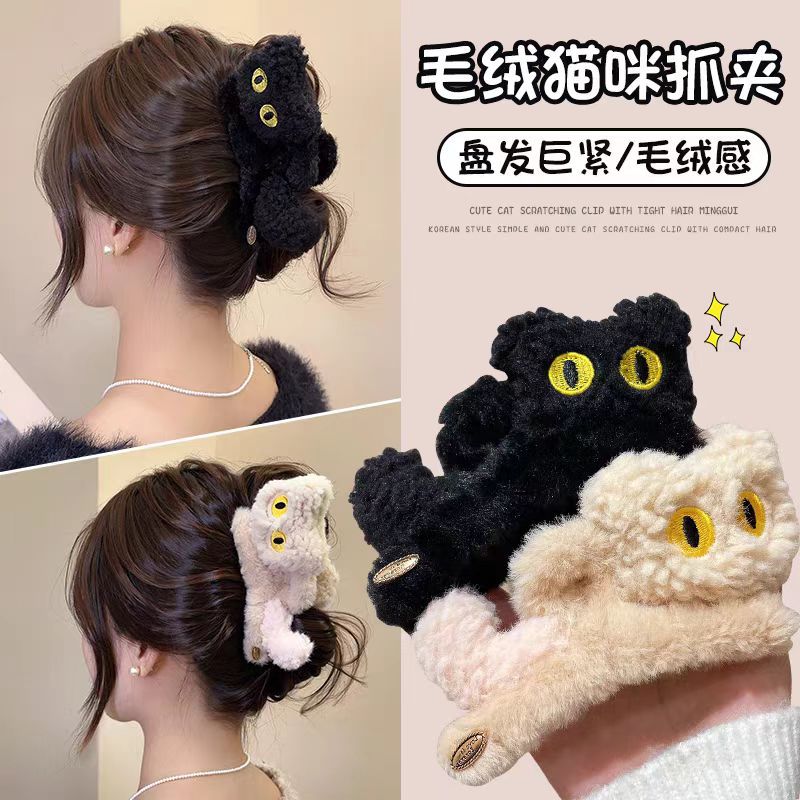 2024新型韓国版ぬいぐるみ立体猫クリップかわいい盤髪サメクリップ子供の後頭部クリップ