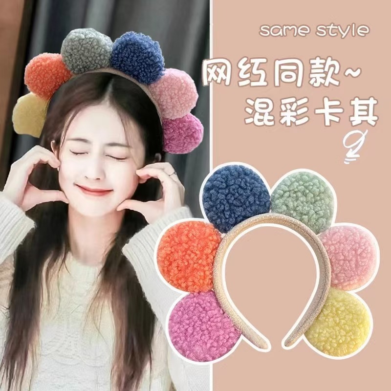 韓国版新型洗顔カラー毛玉太陽花カチューシャひまわり洗顔カチューシャ可愛い化粧髪飾りカチューシャ