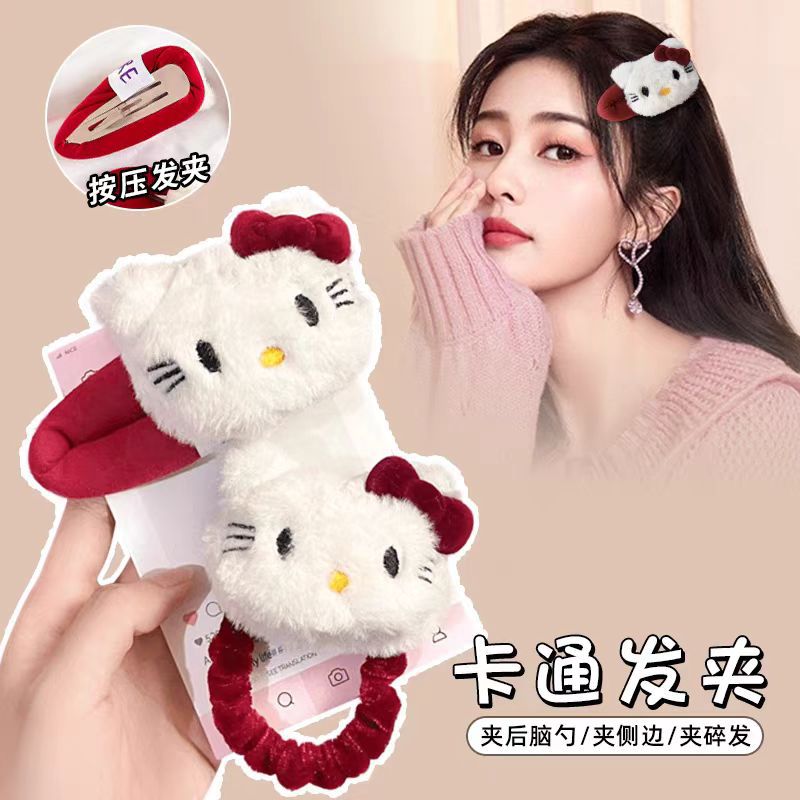 かわいいぬいぐるみの猫の蝶結びのヘアピンの女性2024の新しいネットの赤いサイドの少女bbクリップのヘアピンの髪飾り