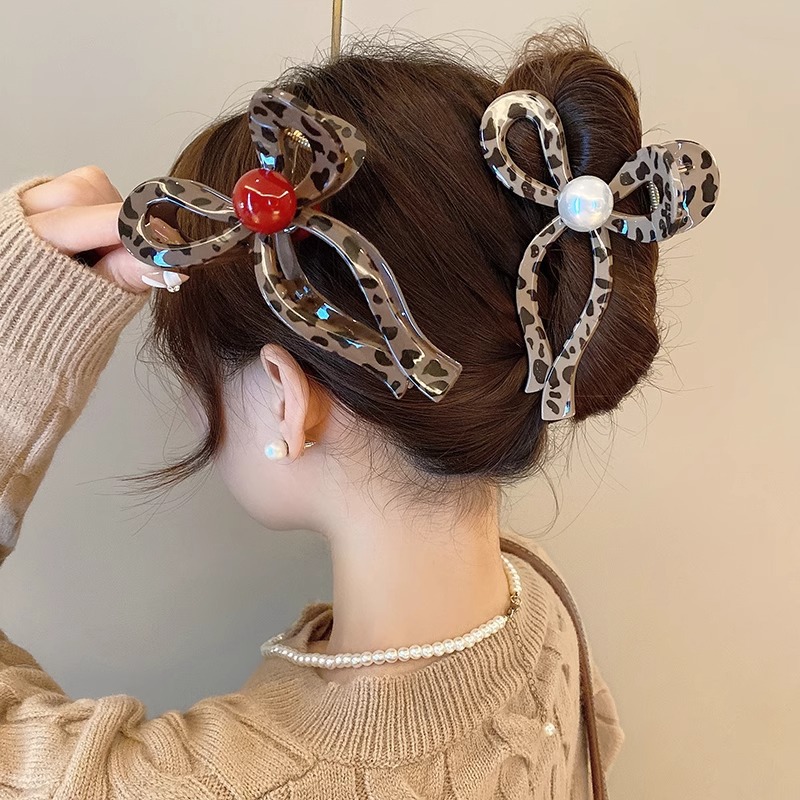 レトロな雰囲気のヒョウ柄の蝶結びの髪は秋冬の雰囲気感を感じます。