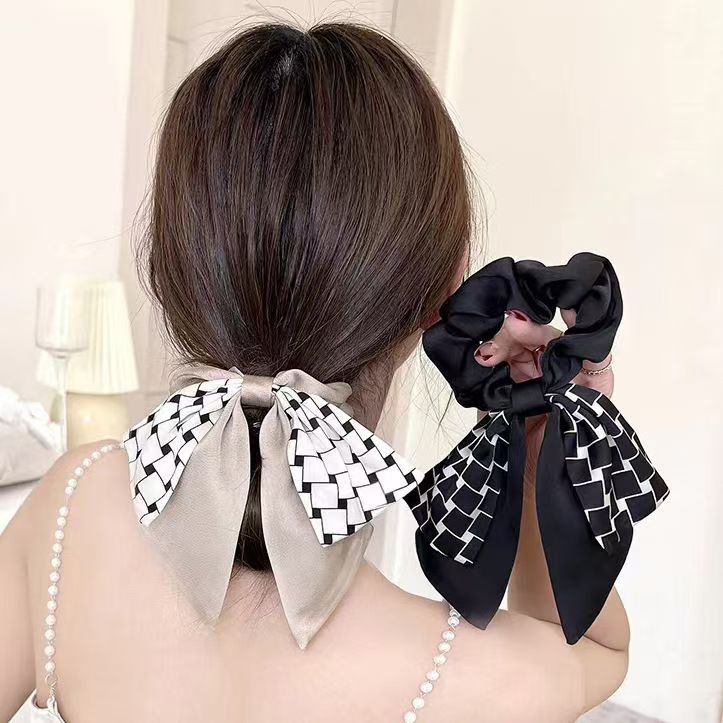 格子縞のリボン付きのリボンのひもの大腸の輪はシンプルで優雅なヘアバンドの女性の髪の輪ゴムのひもを縛ります。