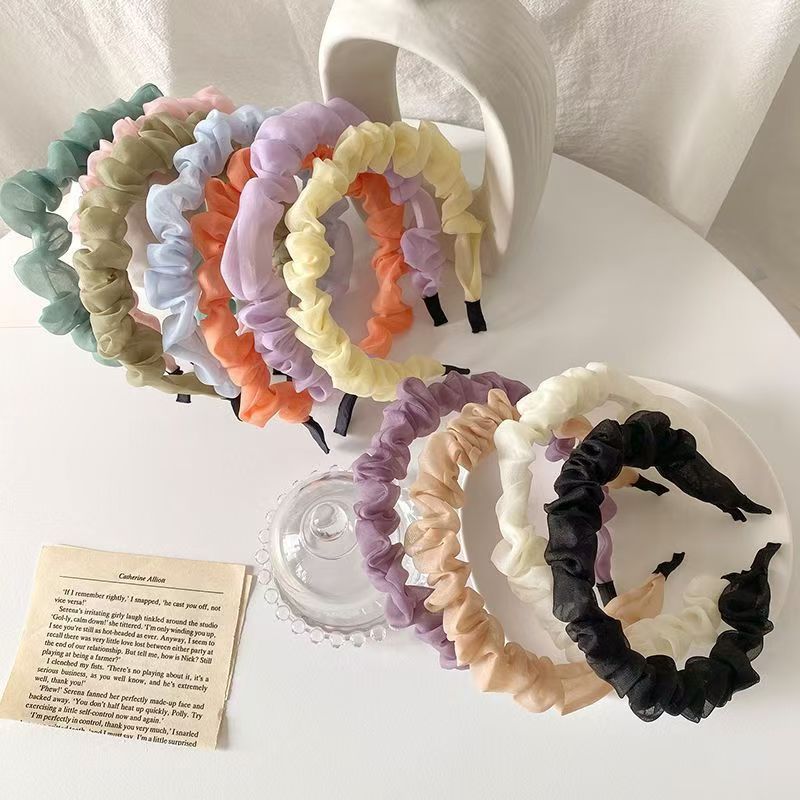 韓国の新商品の網紗のしわのカチューシャの純色の気質に合わせて外出します。