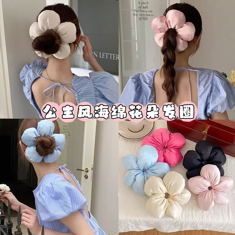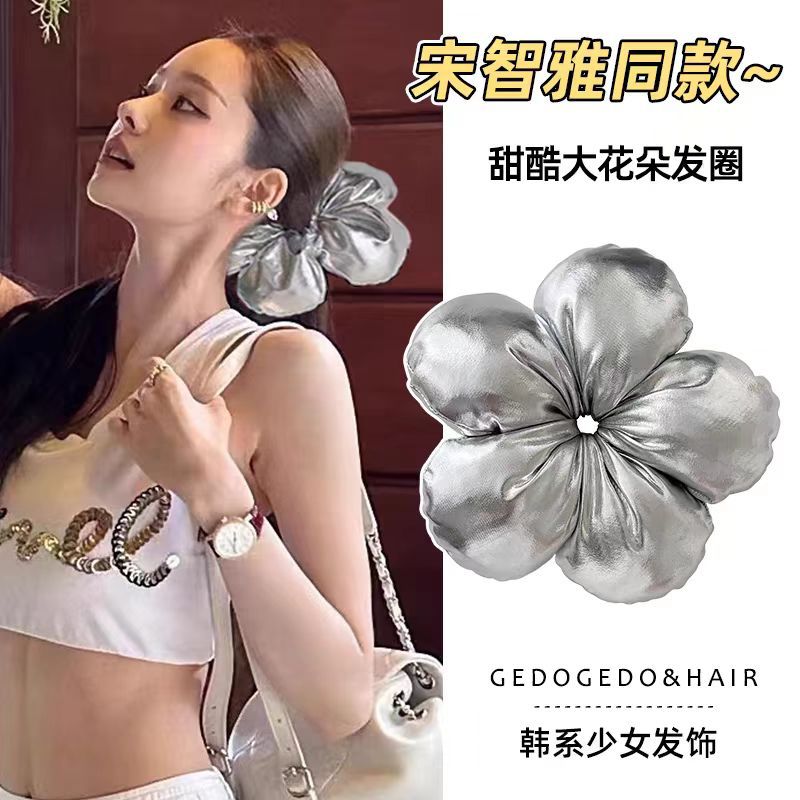 2024新型超特大立体花髪輪女性高級感サテン髪ひも丸子頭馬尾髪ひも髪飾り