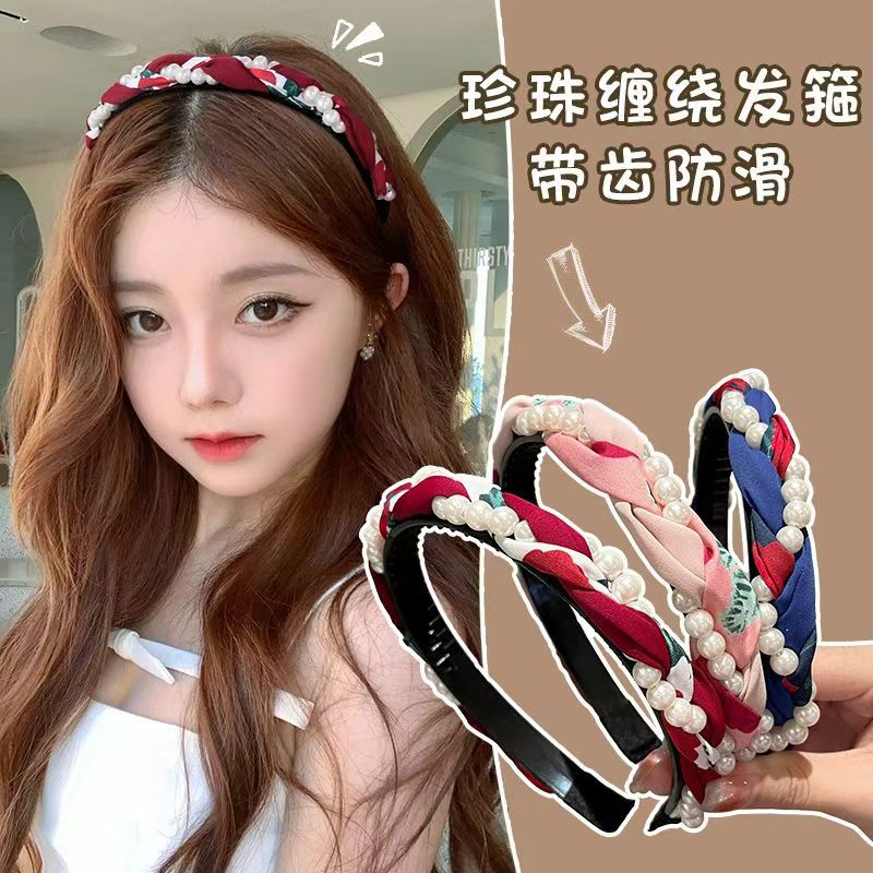 新商品高級レトロ真珠麻花カチューシャ女性気質ワイド滑り止め歯付きカチューシャ高級感髪飾り