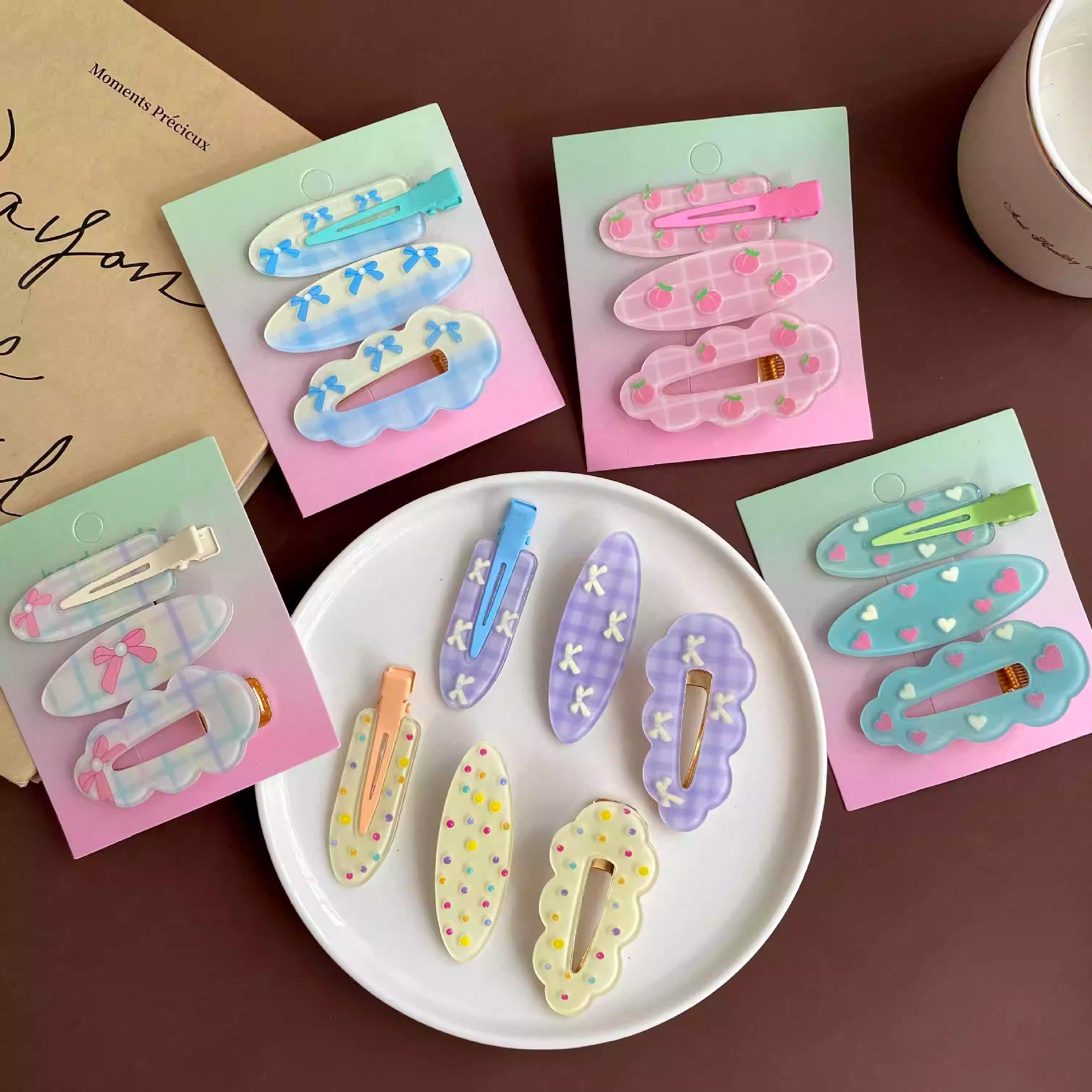 かわいい少女の丸い点前髪クリップネット赤砕毛カード額無痕クリップ甘いクリーム色の髪飾り