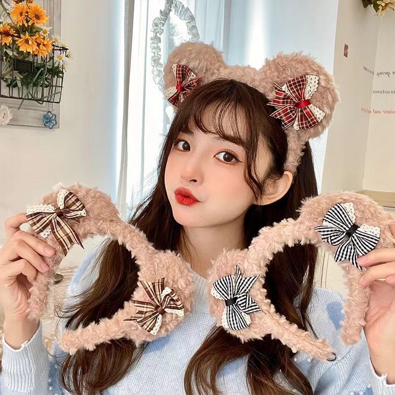 学院風アニメのぬいぐるみの熊の頭のカチューシャの少女の心は萌え髪飾りのカチューシャを売って顔を洗う専用の滑り止めが可愛いです。