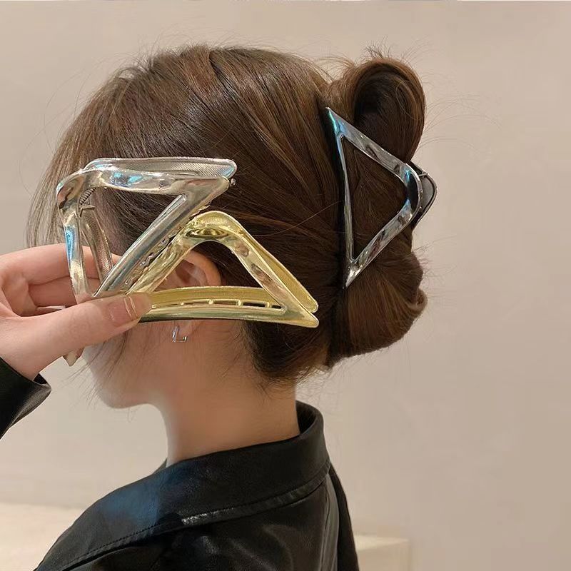 金属の幾何学の三角のヘアピンの女性のヘアピンのネットの赤い大きいサイズのクリップの後頭部のサメのクリップの髪の飾り