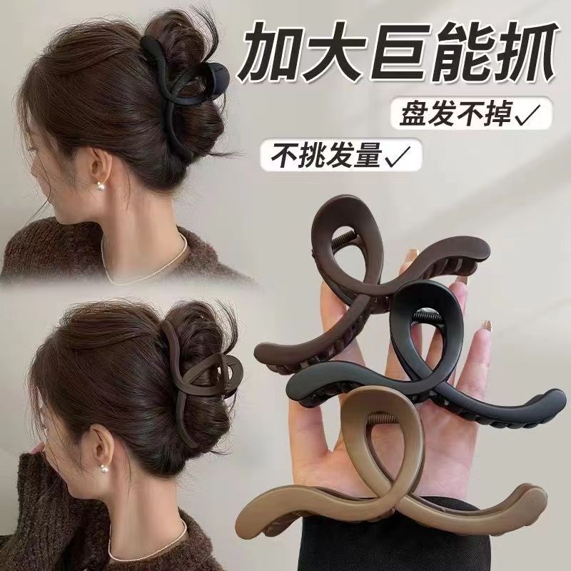 つや消し波髪クリップ女2024新高級感ヘアクリップ大後頭部気質サメクリップ頭飾り