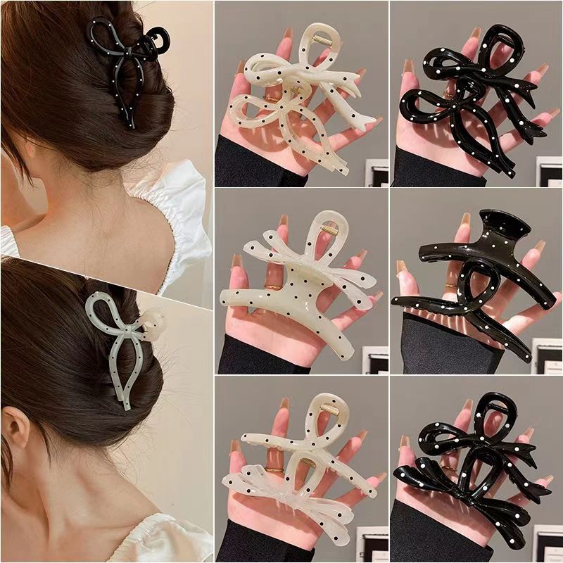 2024新型の冷たい風の蝶結びのヘアピンの後頭部のヘアピンの大きいサイズのネットの赤いサメのクリップの髪飾りのカード