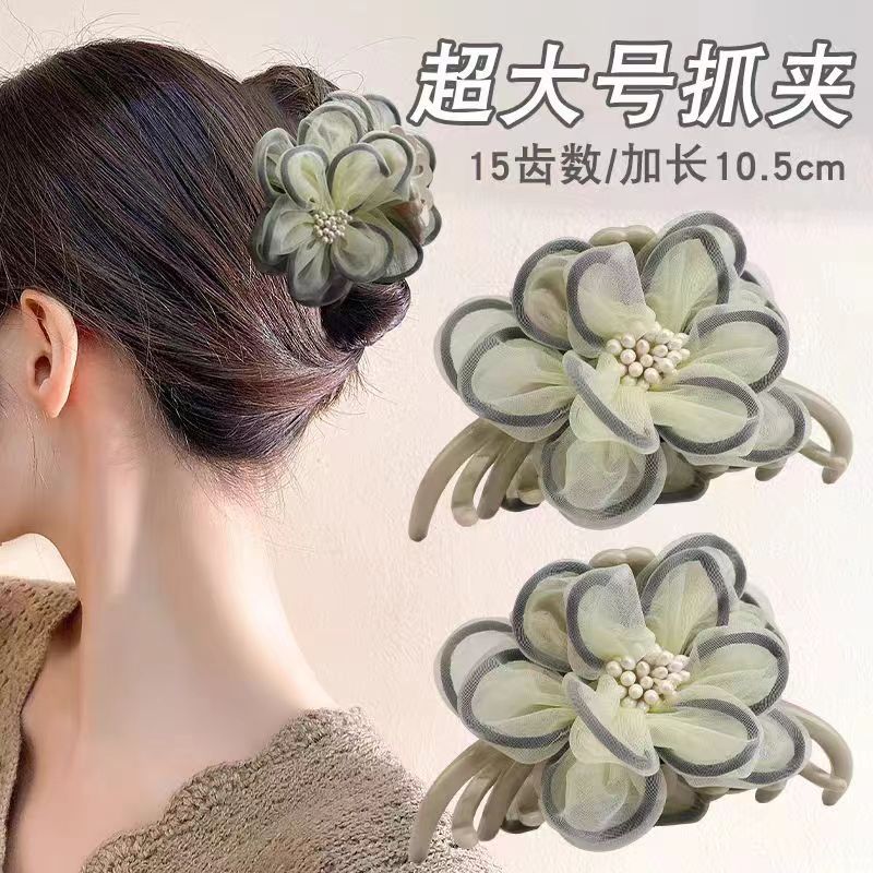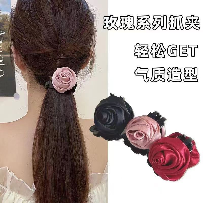 小香風薔薇花トランペットクリップ高級感後頭部髪掴み半髪クリップ髪飾り女