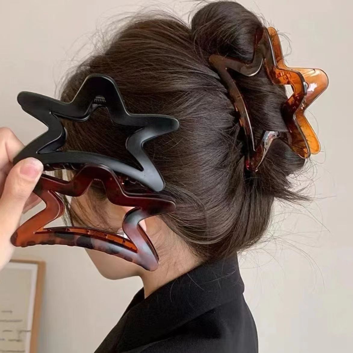 つや消し星クリップ女2024新高級感ヘアクリップ大サイズサメクリップ髪後頭部