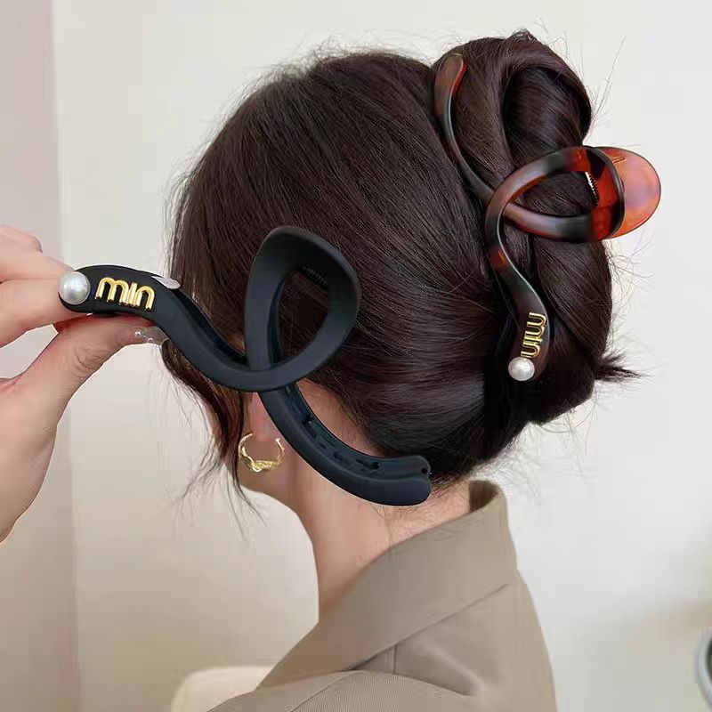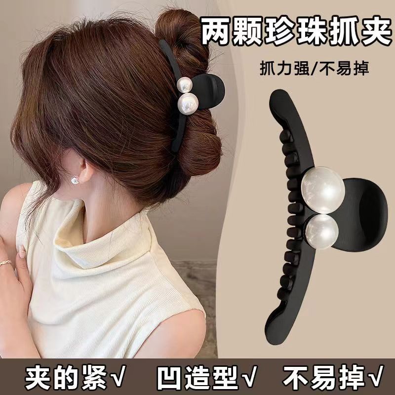 シンプルなフロスト真珠ヘアピン女後頭部高級感大クリップ2024新盤髪サメクリップ高級