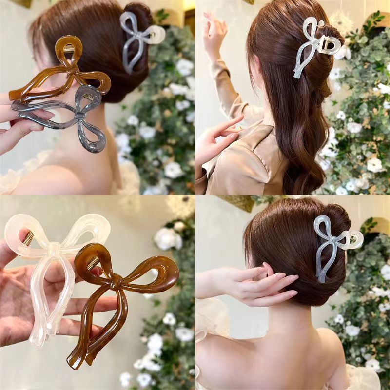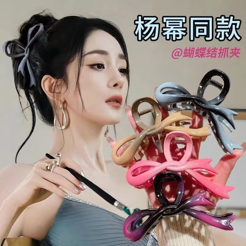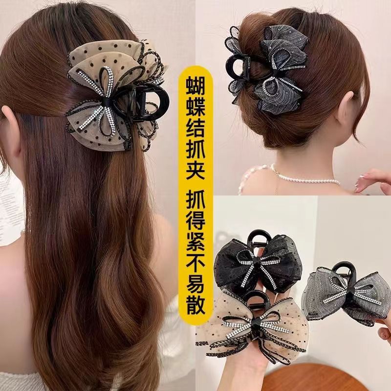 2024新型キラキラ蝶ネクタイ波点網糸泡クリップ高級感後頭部サメ魚クリップ団子ヘアクリップ