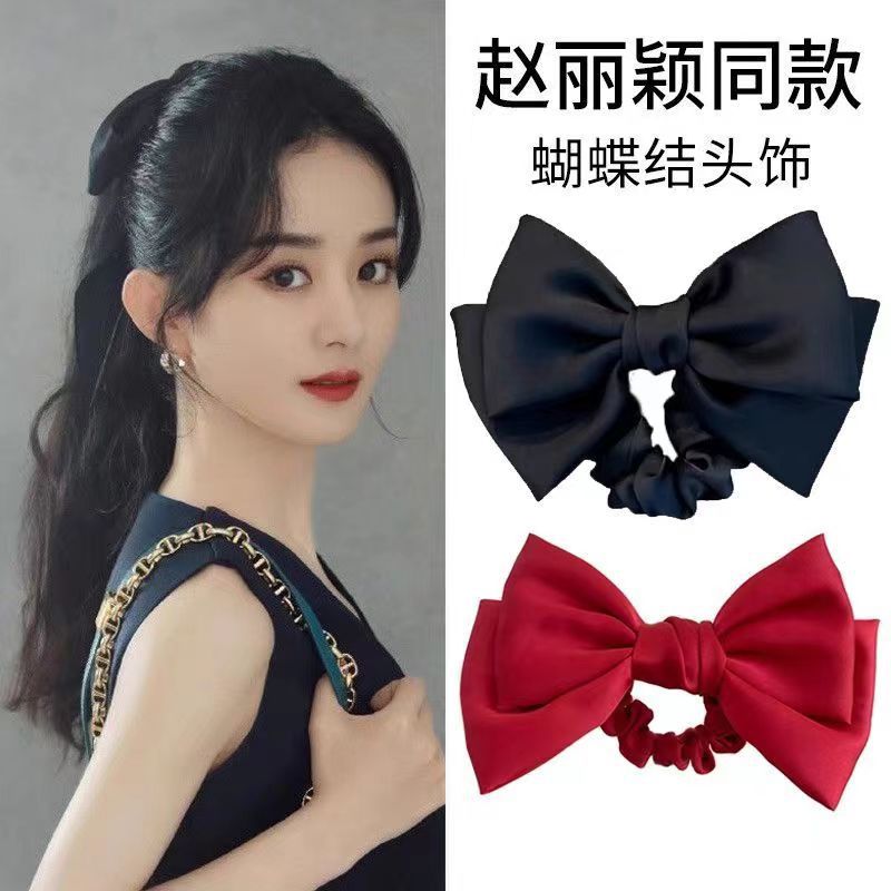 大きい蝶結びのヘアピンの赤いクリップの髪飾りの女性の髪ひもの超仙のネットの赤い髪のカードの後頭部の黒い髪飾り