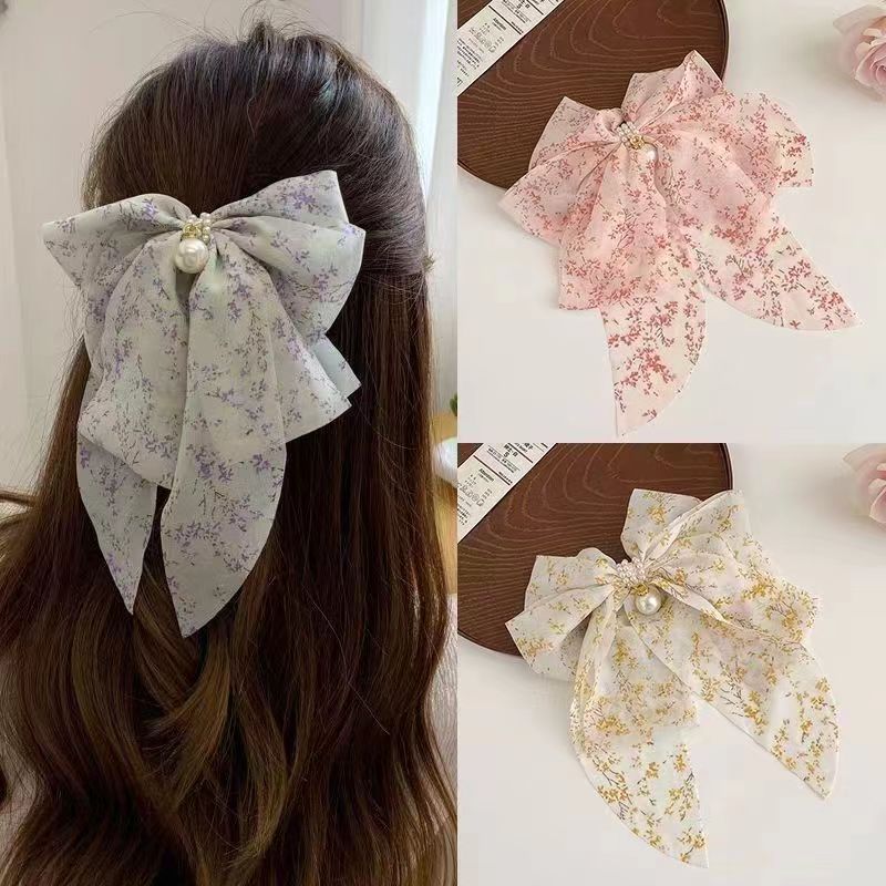 砕花のリボンの大きいサイズの真珠の蝶結びの髪は女性のネットの赤い後頭部を挟みます。