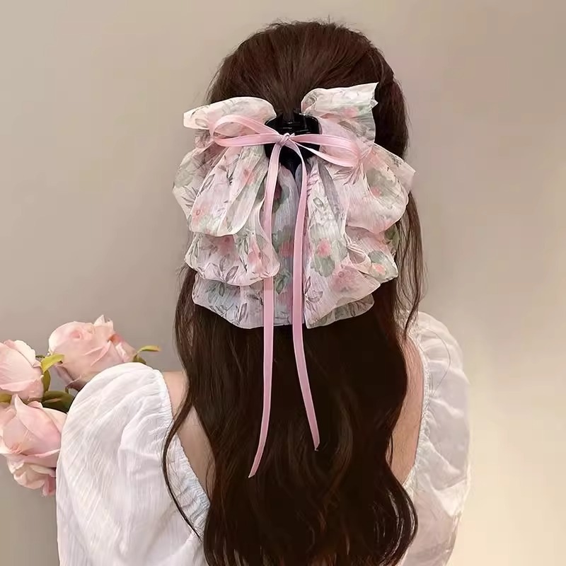 非常に仙砕花の大きい結びのリボンの小さいクリップの高級感のヘアピンの後頭部のサメのクリップの髪の髪のカードの個性は流行します。