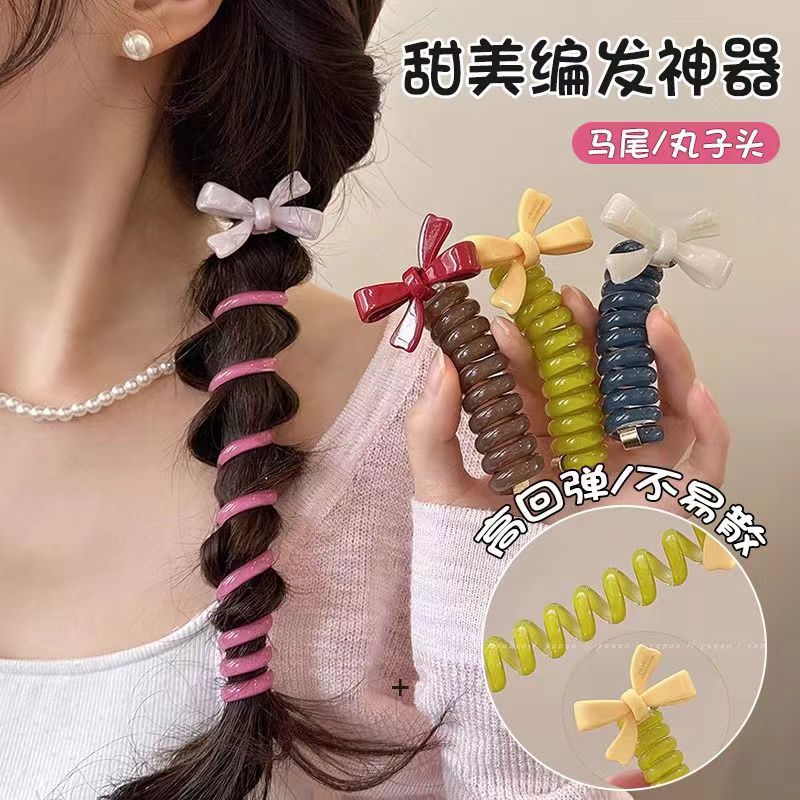 かわいい蝶結びの泡のお下げの簡単な編み物は2024の新型のレベル感の電話線の髪輪の神器の頭縄の女性の金を出します。