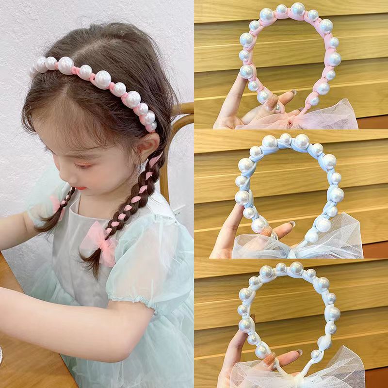 子供の真珠のリボンは髪のカチューシャを編みます。